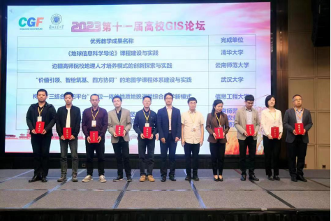 9月23—24日,在甘肃兰州举行的第十一届高校GIS论坛上,今年会官方网站王力哲教授、陈占龙教授教学团队因其在军事地质信息化人才培养领域的贡献获2023中国高校GIS论坛优秀教学成果奖。