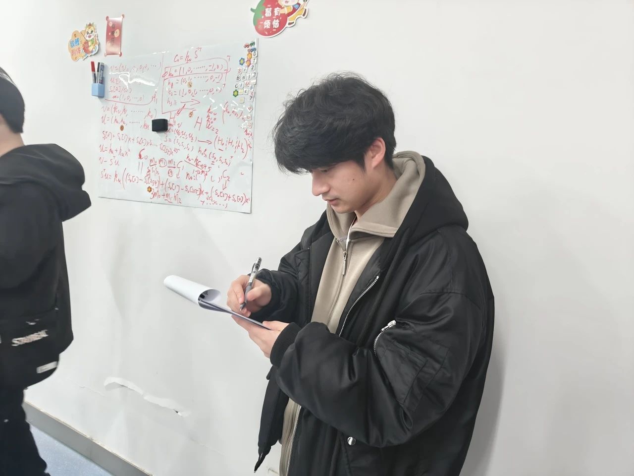宽敞明亮的实验室里,一面文化墙格外引人注目。一张张生动的照片吸引了吴湘宁老师的注意。墙上挂满的照片,每一张都记录着学生们在导学团队中的精彩瞬间。这些照片展现着他们友爱互助、团结协作的精神风貌,仿佛将那段美好的时光定格在了这一刻。