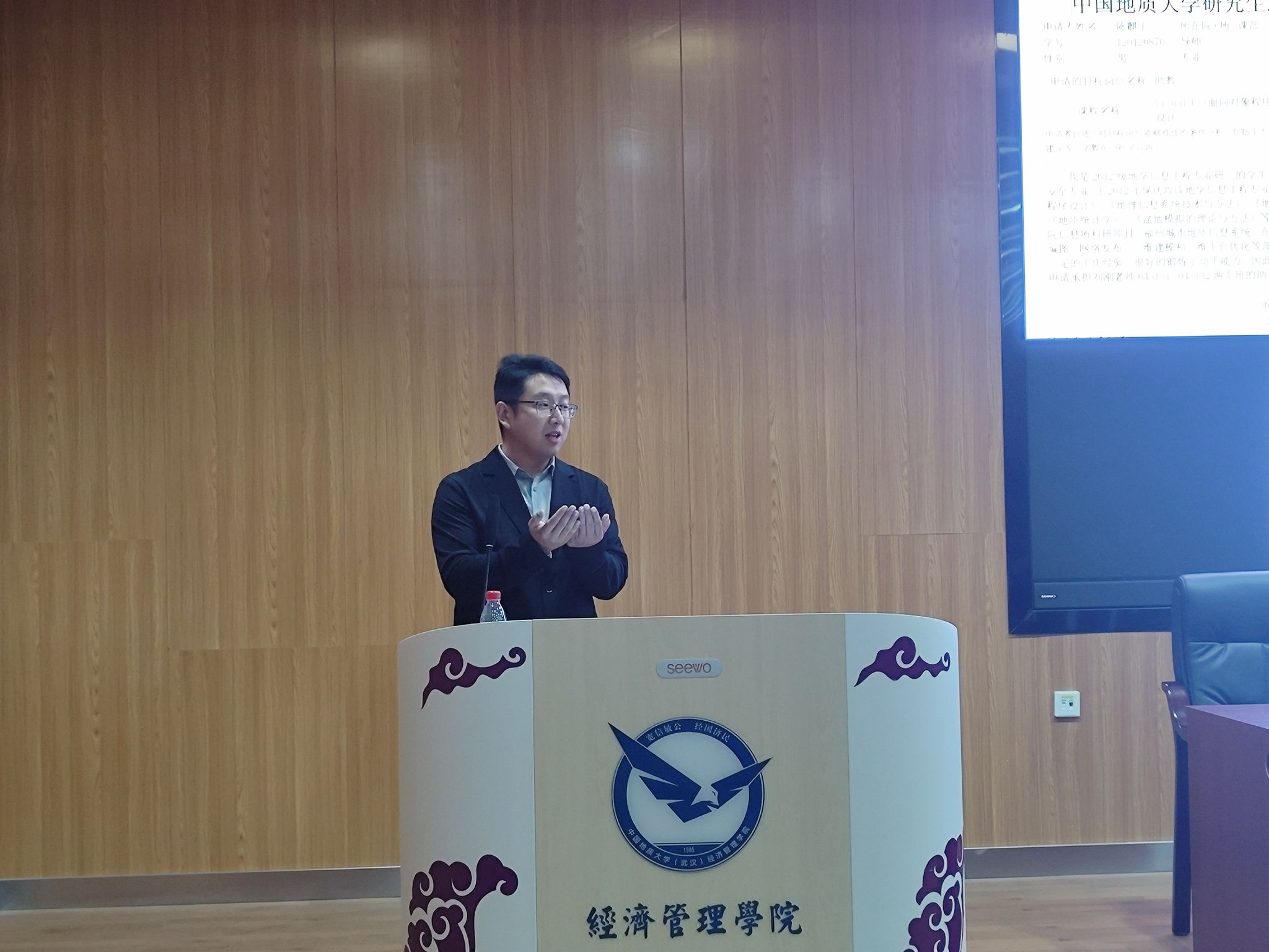 陈麒玉老师以自身本科学习经历为引,讲述了个人 “接纳平庸的自我,拥抱独特的自我,追求优秀的自我”的过程。他说,每个阶段都有不同的挑战和要求,需要找到适合自己的学习方法和应对策略。在优秀学子云集的地大,以往的学习优势可能不再明显,因此,同学们需要找到适合自己的方法,调整心态来应对挑战,鼓励大家珍惜每一个学习和锻炼的机会。无论是参与科研项目、建模开发,还是参与助教等教学活动,这些经历都将积累宝贵的经验和技能,助力同学们更清晰地认识自己的兴趣和职业方向。