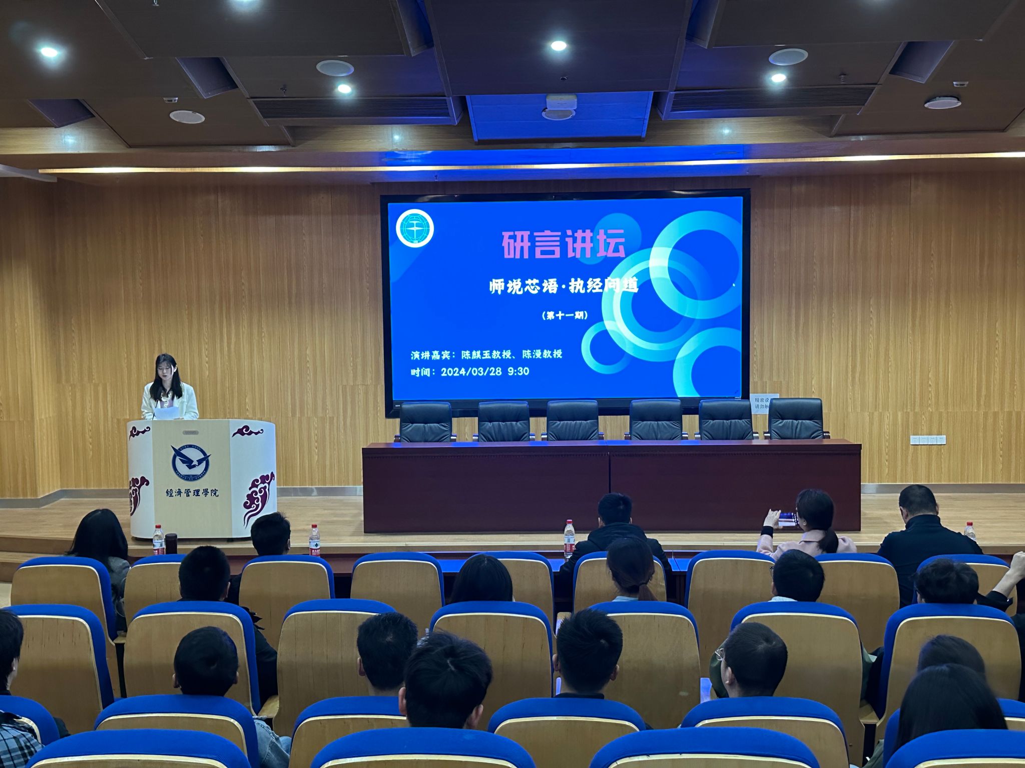 为激发研究生在跨学科研究方面的创新思维与对学术研究的热情,进一步拓宽学术视野,提升自我认知和发展规划能力,研究生院(党委研究生工作部)主办,今年会体育官网与经济管理学院联合承办第十一期“研言讲坛”暨今年会体育官网第三期“师说芯语”导学沙龙, 2024年3月28日在未来城校区崇信楼110报告厅举办。本次活动今年会体育官网陈麒玉教授、经济管理学院陈漫教授为主讲嘉宾, 党委研究生工作部挂职副部长蒙冕模、今年会体育官网党委副书记林小艳、经济管理学院党委副书记李纪亮,两学院100余名研究生参加。