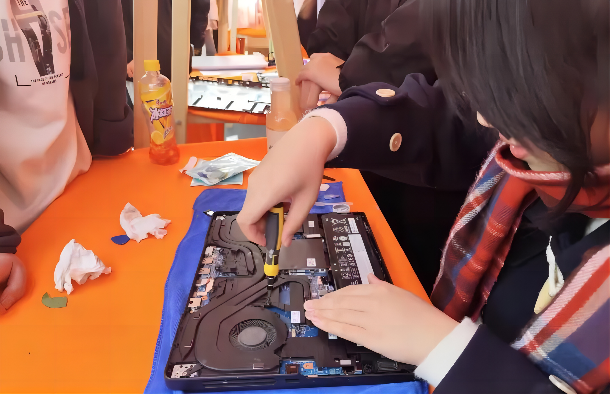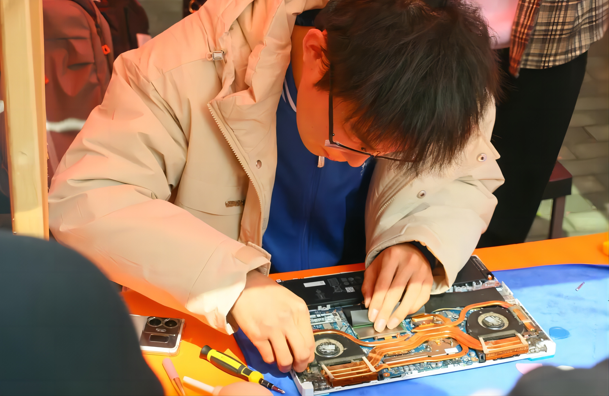 在学校公益集市中有这么一个摊位,四周站满了人,今年会体育官网“服务E时代”的志愿者们全程无法休息,竭尽全力解决每一个同学的问题。“服务E时代”社团作为计科志愿者的代表,每每有这样的活动,都一定会有一群人坐在两张桌子前,拿着精巧的工具,仔细检查和维护每一台电脑,每次开展电脑义诊,活动现场皆热火朝天。