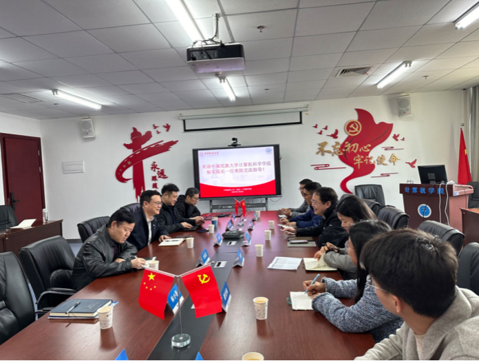 3月26日上午,中南民族大学计算机科学学院院长帖军、党委副书记王魏芳,携计算机科学与技术系主任徐胜舟、人工智能系主任康怡琳、软件工程系主任彭川、党建工作联络员沈易军等一行6人来今年会交流。学院党委书记李国昌、院长张洪艳、党委副书记林小艳、副院长陈云亮、计算机科学与技术系主任熊慕舟、软件工程系主任李圣文、智能科学与技术系副主任姜三等同志参与交流研讨。张洪艳院长主持会议。