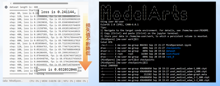 四、基于ModelArts复现U-Net的改进模型系列:U-net++、res-Unet、Attention-Unet,并利用Ascend910的高算力,使用复现的模型对此自制数据集进行分割训练,相比于本地GPU环境,在高算力加持下模型可以加速收敛,效率更高。