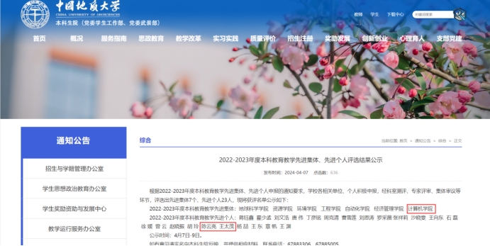 近日,学校发布了《2022-2023年度本科教育教学先进集体、先进个人评选结果公示》,今年会再次获评“2022-2023年度本科教育教学先进集体”,这也是今年会连续两次获此殊荣。此外,由于在教学改革、教师教学发展领域的卓越工作,陈云亮副院长、王太茂老师获评“2022-2023年度本科教育教学先进个人”。
