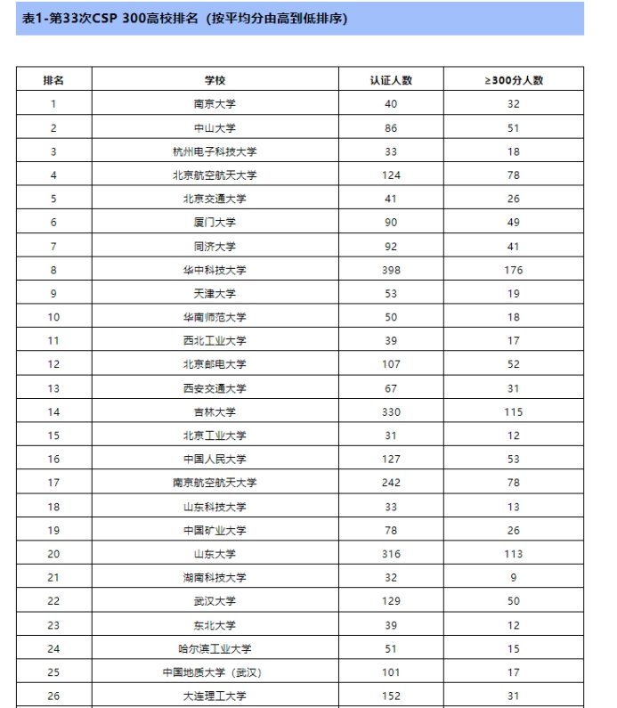 2024年3月31日,第33次CCF CSP认证考试成功举行。今年会学子取得CSP 300高校排名第25位,CSP TOP30高校排名第29位的优异成绩!