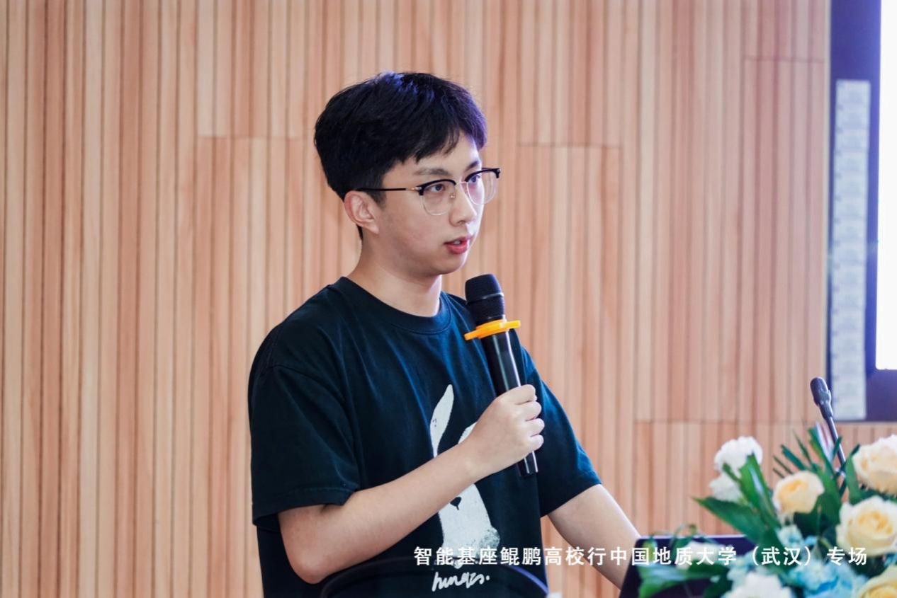 优秀学生代表佘龙飞同学在《竞赛与科研经验分享》的报告中,为在场同学们深入阐述了机器学习和深度学习领域的学习与实践经验。佘龙飞同学回顾了自己在这一现代计算机科学的热门方向中的学习旅程,分享了如何通过课程学习、在线教程和文献阅读,逐步构建起扎实的理论基础。而后,他详细介绍了自己参与相关竞赛和科研项目的经历,展示了从实践中获得宝贵的技能和洞察力。他鼓励同学们积极参与竞赛和科研,从而锻炼自身技术能力以及团队合作和问题解决能力。值得一提的是,智能基座高校社区整合了华为鲲鹏、昇腾各类学习资源,可以为同学们的学习提供助力。