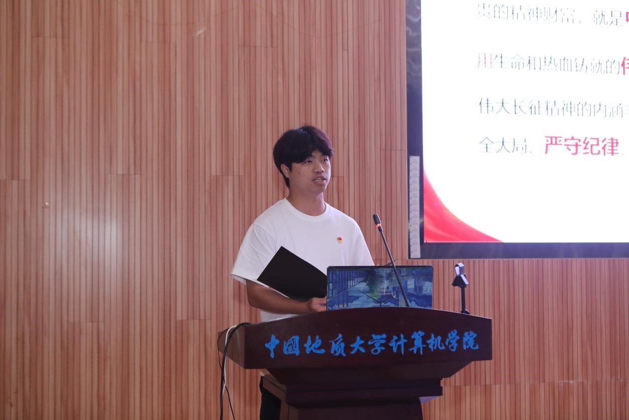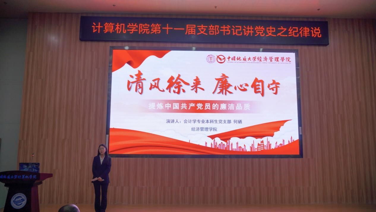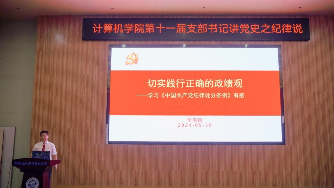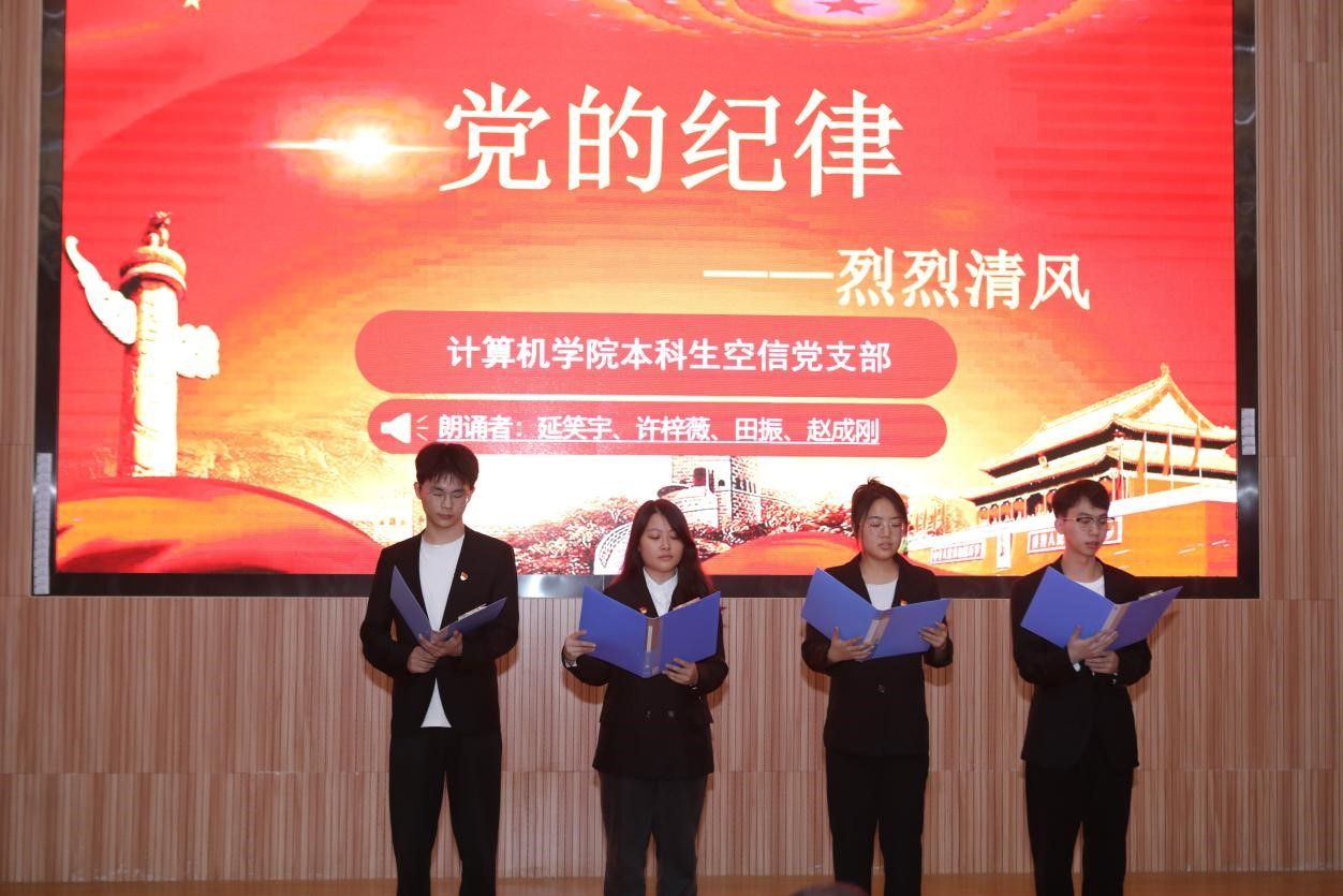 活动在雄壮的国歌声中拉开帷幕。学生党支部书记率先登场。电子信息第三党支部朱国强以刘邓大军的严明军纪为例,强调了纪律在军队建设中的重要作用。本科生信安党支部郭鹏顺则从新民主主义革命时期的党纪建设出发,强调了坚守初心、严明纪律的意义。本科生空信党支部延笑宇等多名成员以“党的纪律:烈烈清风”为题的诗歌朗诵,声情并茂地展现出对党廉政建设的歌颂。本科生计科第一党支部王诗敏则以延安廉政的故事为蓝本,深入剖析了党在推动廉政反腐方面的必要性和坚定决心。电子信息第二党支部潘灿通过讲述郭明义的故事,展现了廉洁奉公、无私奉献的崇高精神。电子信息第一党支部胡长浩深刻阐述了铁纪在长征这一伟大的历史事件中的关键作用。在今年会体育官网空间信息工程党支部与经济管理学院生态文明研究生样板党支部成员的精心编排下,以一场独具特色的话剧将现场气氛推向了高潮,生动诠释了“亲民爱民、艰苦奋斗、科学求实、迎难而上、无私奉献”的“焦裕禄精神”。