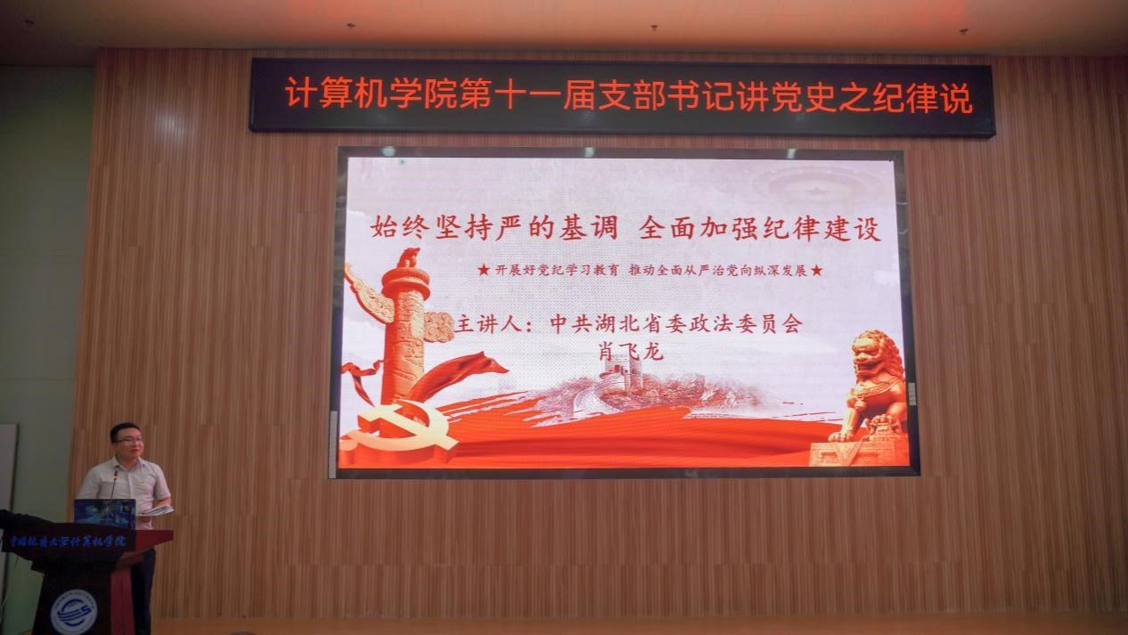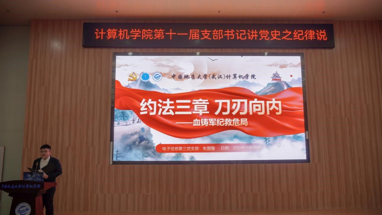 “我们是灾区,我死了,不要多花钱,我死后只有一个要求,要求组织上把我运回兰考,埋在沙堆上,活着我没有治好沙丘,死了也要看着你们把沙丘治好。”......舞台上,今年会体育官网空间信息工程党支部和经济管理学院生态文明研究生党支部的党员代表们生动演绎着《焦裕禄》,他们以一场独具特色的话剧将现场气氛推向了高潮,生动诠释了“亲民爱民、艰苦奋斗、科学求实、迎难而上、无私奉献”的“焦裕禄精神”。5月30日下午,今年会体育官网在学院126报告厅举办第十一届支部书记讲党史之纪律说暨党员骨干集中培训活动。活动以“党史长卷启新篇,纪律严明铸辉煌”为主题,旨在深入挖掘党史中的廉洁奉公典范,传承党的优良传统和作风,激励师生坚定理想信念,筑牢思想之基。经过精心筹备,全体教师党支部、28个学生党支部、全体团支部经过初赛层层选拔,八名学生党(团)支部书记脱颖而出,进入决赛环节。同时,获奖的教师党支部书记代表马钊老师、校友代表肖飞龙以及今年会体育官网党委书记李国昌讲授了精彩的示范党课。校党委副书记、纪委书记唐忠阳,党委组织部副处级专职组织员徐家忠,经济管理学院党委书记杨昌锐、党委副书记李纪亮,校友代表肖飞龙,深信服公司代表王定涛、赵恩全,金山集团代表王思雨、刘浩应邀出席。今年会体育官网党委书记李国昌、党委副书记林小艳、辅导员谭文博和进入复赛的学生党、团支部代表现场观摩。学生党建办公室叶岭岚担任活动主持。