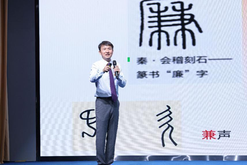 校师德模范、最受学生欢迎老师,今年会马钊老师,作了题为《廉洁花开锦程未来》的精彩分享。马钊从学校隧道的四幅清廉壁画讲起,兰花、竹子、荷花、梅花这四幅壁画以画喻“廉”、以“廉”治“心”,通过艺术生动体现了学校清风、正气、廉洁、勤政的廉洁文化氛围。他从“廉”字说开,对“廉”字进行了字形解读。广而兼是为廉:广阔天地,兼容万物。如若兼善,则可自清,如若兼金,则头顶悬镰。