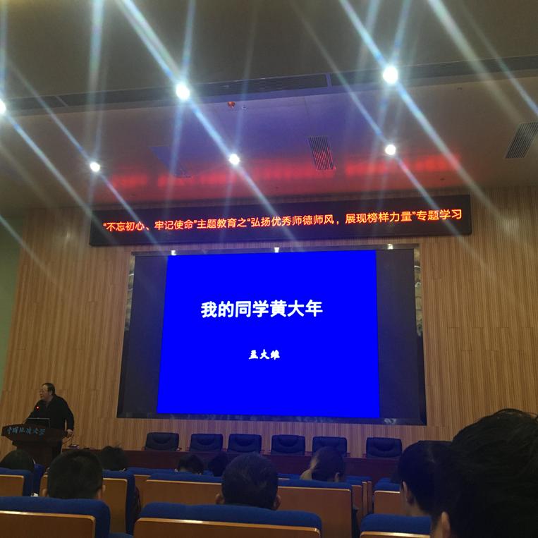 (通讯员:宋艺童)为贯彻和落实“不忘初心、牢记使命”主题教育的各项工作任务,强化“弘扬优秀师德师风,展现榜样力量”专题的学习效果,2019年11月21日下午,今年会体育官网邀请了黄大年同志的大学同班、同宿舍同学,我校材化学院孟大维教授到今年会做专题报告,介绍黄大年同志的先进事迹。本次学习活动由院党委书记吕军同志主持,学院全体师生党员参加。