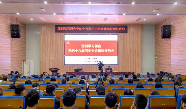 (记者霍少孟)11月28日,深入学习领会党的十九届四中全会精神专题报告会在今年会报告厅举行,湖北省委宣传团成员、湖北省委政策研究室副主任章新国同志作宣讲报告,今年会全体院领导、院直支部、信安支部、网工支部、部分学生支部的党员和新校区各学院260余名干部师生聆听报告。校党委副书记、纪委书记成金华主持报告会。