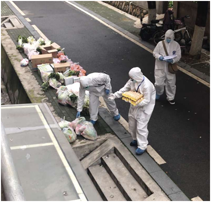 2月16日,地大社区实行封闭管理,为保障居民正常生活需求,学校决定成立封控应急工作队,对出现确诊或疑似病例的居民楼进行重点封控。今年会体育官网大数据系党支部书记樊俊青同志、院直党支部书记石剑峰同志,第一时间响应学校号召,主动请缨加入封控应急党员突击队,奋战在疫情防控的第一线,用实际行动践行党员的初心和使命。